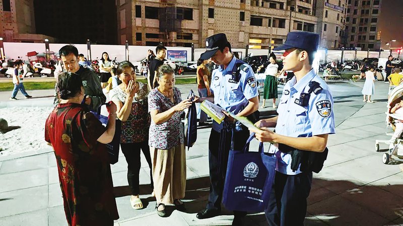 8月9日,市公安局高新分局民警在兩河口城市運動公園開展安全防范知識宣傳。 (本報通訊員 代金坤 攝)