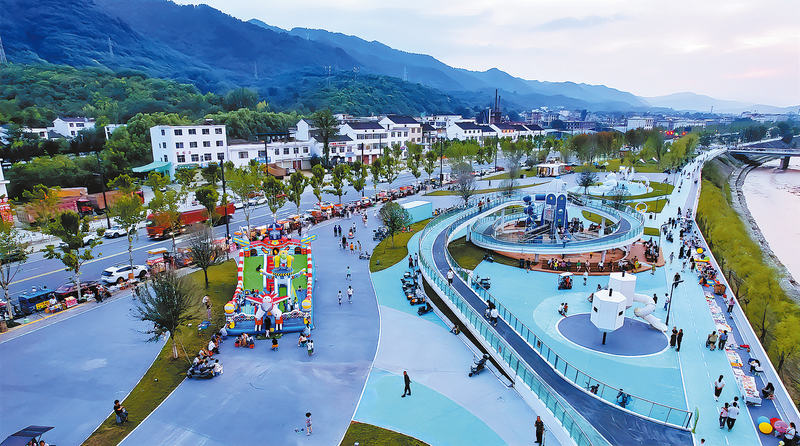 游人在丹江源·康養(yǎng)濱水步道游玩休憩
