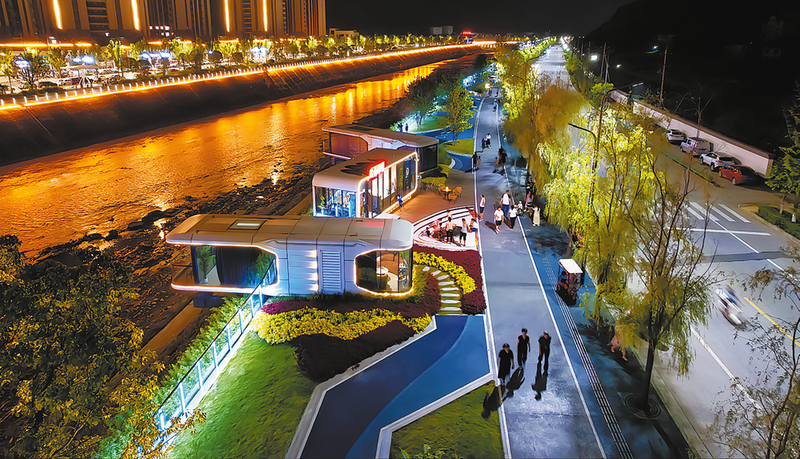 南秦河生態(tài)公園游人眾多,讓夜間經(jīng)濟煥發(fā)活力。