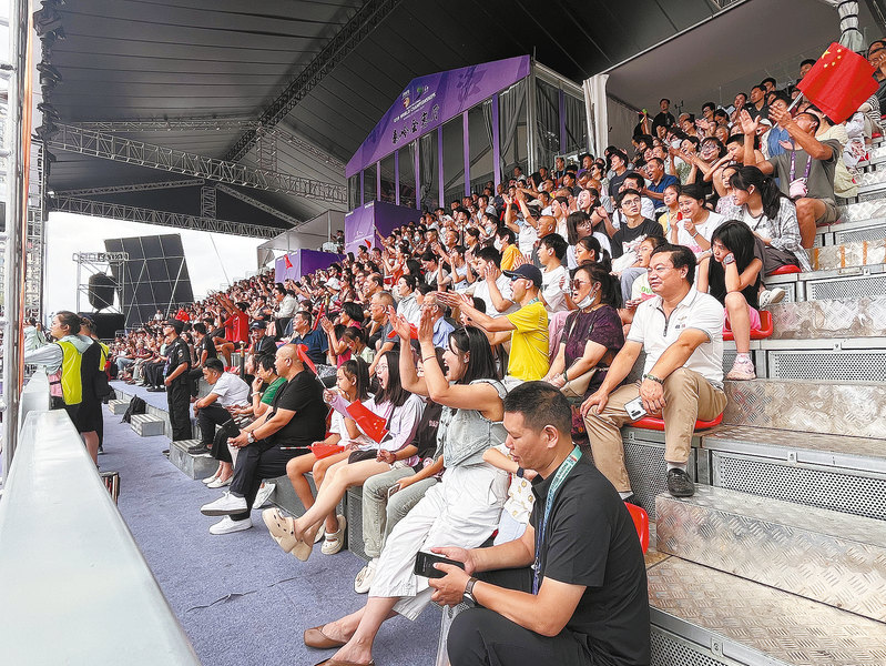 一次次酣暢淋漓的進(jìn)攻、一場場動人心魄的對決,觀眾激情四溢,或搖旗吶喊、或鼓掌助威、或拿著相機(jī)捕捉精彩瞬間。每一個球都牽動著大家的心,加油聲、吶喊聲、助威聲此起彼伏。“比賽非常精彩,沒想到搶到票后能看到這么高質(zhì)量的沙排比賽。”市民趙偉告訴記者,他特別喜歡觀看排球類的比賽,得知這次在家門口舉辦的比賽后,他一直都在關(guān)注賽事信息,能購票后第一時間搶了票,精彩的比賽讓他非常激動。