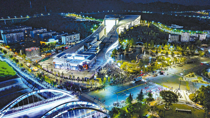 8月27日至9月1日,2024國(guó)際排聯(lián)沙灘排球U19世界錦標(biāo)賽在商洛市舉行。在秦嶺博物館,夜晚流光溢彩、五彩斑斕、美不勝收。 (本報(bào)記者 楊 鑫 攝)
