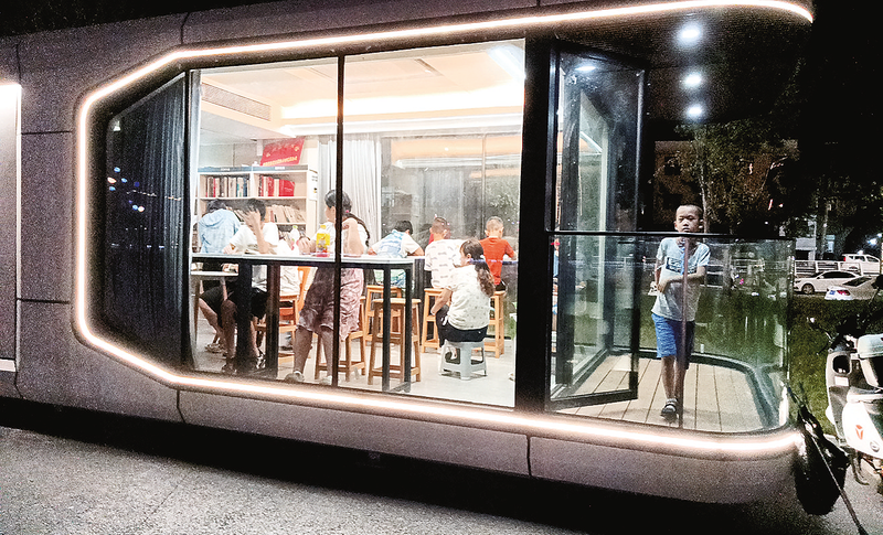 在書(shū)吧里,墻面上有倡導(dǎo)閱讀的標(biāo)語(yǔ),可供大人小孩選擇的書(shū)本很多。書(shū)吧還提供免費(fèi)熱水等服務(wù),細(xì)致的服務(wù)不但提升了市民的幸福感,也提升了外地游客的體驗(yàn)感。
