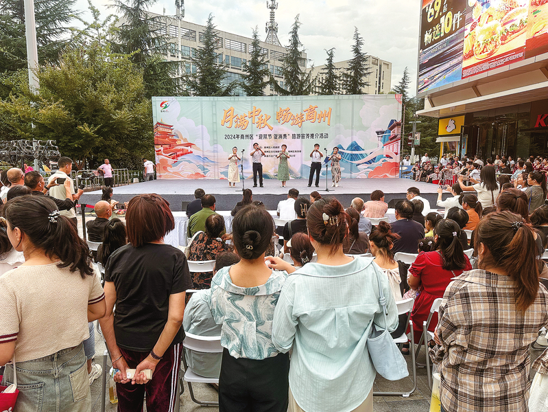 商洛萬達(dá)廣場前的中秋文藝演出吸引眾多市民駐足觀賞