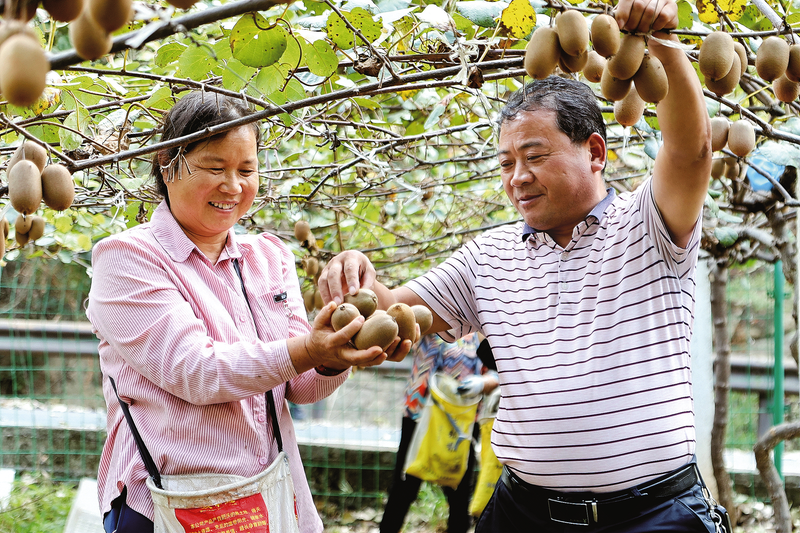 近期,丹鳳縣武關鎮(zhèn)毛坪村的狝猴桃迎來豐收季。狝猴桃屬于村集體產(chǎn)業(yè),面積80畝,于2017年栽植,近兩年已經(jīng)到了盛產(chǎn)期,年產(chǎn)狝猴桃約2萬公斤,產(chǎn)值約12萬元,帶動65戶125人就業(yè),戶均年增收3000多元。圖為9月21日群眾看著豐收的狝猴桃滿臉笑容。