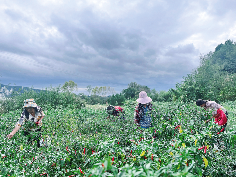 9月20日,正值辣椒成熟的季節(jié),洛南縣石坡鎮(zhèn)王村村的田間地頭,紅綠交織的辣椒掛滿了枝頭,務工群眾動作嫻熟地采摘辣椒。近年來,石坡鎮(zhèn)探索“黨支部+企業(yè)+農戶”的產(chǎn)銷銜接發(fā)展模式,與企業(yè)達成“保底價+市場價”的“訂單式”收購協(xié)議,極大調動了農戶種植積極性。今年,石坡鎮(zhèn)種植辣椒2000多畝,成為村民增收致富的一大特色產(chǎn)業(yè)。(本報通訊員 袁 苗 攝)