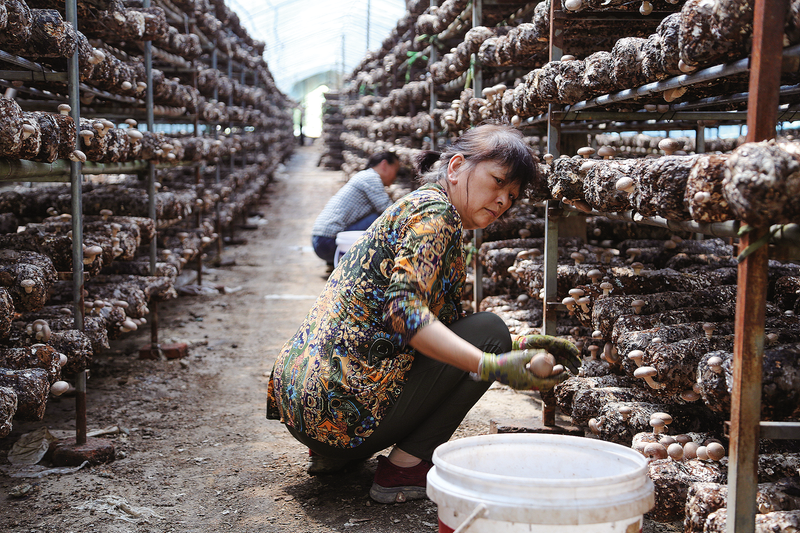 9月14日,商州區(qū)北寬坪鎮(zhèn)食用菌農民專業(yè)合作社的大棚里,村民正在采摘香菇。該合作社按照“合作社+基地+農戶”的產(chǎn)業(yè)化經(jīng)營思路,帶動周邊村民220多人從事香菇、木耳、平菇等菌袋生產(chǎn),促進村民增收致富。 (本報記者 王孝竹 攝)