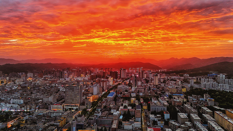 8月20日,夕陽西下,商州城區(qū)絢麗的晚霞染紅了半邊天,美麗壯觀。