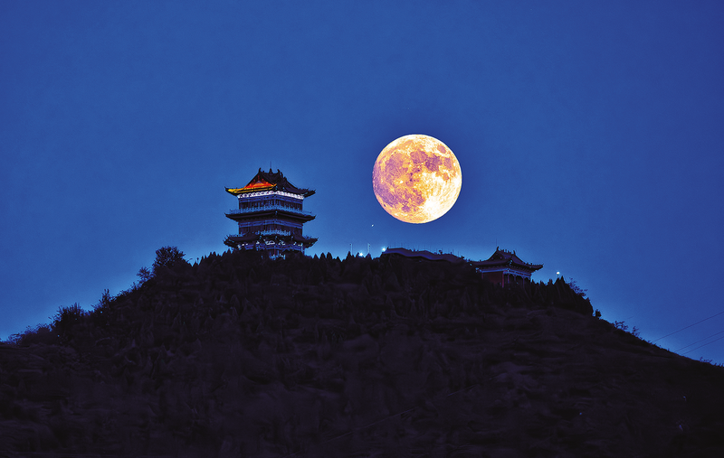 中秋節(jié)當(dāng)天,在丹鳳縣拍到的月照金山美景。
