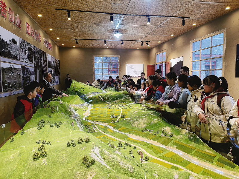 “這條懸崖上的水渠是如何修建起來的呢?”看到懸崖絕壁上那條奔流不息的洛惠渠后,小記者費(fèi)蘇洛心中產(chǎn)生了疑惑。“60多年前,面對‘苦瓜梁塬黃柏川,吃水更比吃油難’的困境,洛南舉全縣之力,絕壁鑿石,歷時一年,修出了一條63公里的‘掛壁天河’,也就是現(xiàn)在的洛惠渠。它承載著人們堅(jiān)忍不拔的勇氣、甘于奉獻(xiàn)的精神和不懈奮斗的豪情,也體現(xiàn)了自力更生、艱苦創(chuàng)業(yè)、團(tuán)結(jié)協(xié)作、不怕犧牲的精神。”保安鎮(zhèn)黨委副書記胡小龍向小記者介紹。