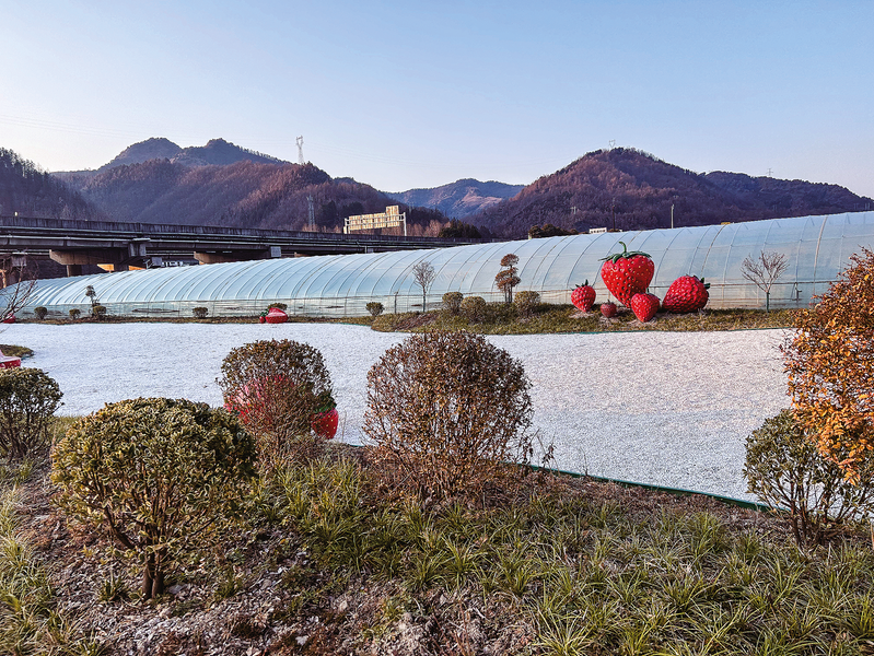 2024年12月20日,沐浴在陽(yáng)光中的下灣村草莓園,一排排大棚鱗次櫛比,孕育著生機(jī)。入口處,一個(gè)路燈狀的草莓采摘呼叫器與種植戶的手機(jī)相連,只需輕按3秒,就會(huì)傳來(lái)語(yǔ)音提示:你好,棚主正飛奔而來(lái),請(qǐng)耐心等待……遠(yuǎn)處360°無(wú)死角的監(jiān)控、各種智能化的種植系統(tǒng),盡顯十足的科技感。