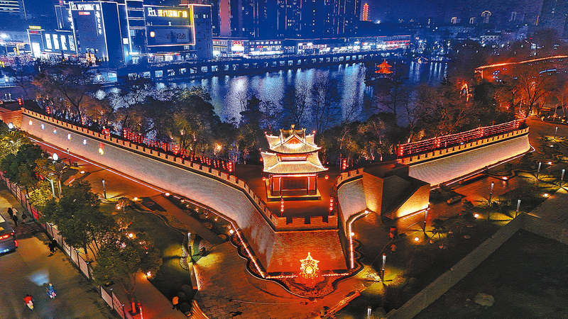 1月23日,改造完成的商州故城西南段城墻彩燈高掛、夜景怡人。據(jù)了解,城墻及周邊景觀綠化提升項(xiàng)目已順利完工,將于1月25日向市民與游客開放。商州故城西南段城墻保護(hù)工程及城墻遺址公園建設(shè)項(xiàng)目東鄰蓮湖公園、西鄰工農(nóng)路,商州故城墻總長(zhǎng)約240米,西段長(zhǎng)約113.23米、南段長(zhǎng)約127.08米;城墻遺址公園項(xiàng)目占地約1.5萬(wàn)平方米。工程將城墻風(fēng)貌修復(fù)提升與文物保護(hù)、歷史文化傳承相融合,以修舊如舊的方式重現(xiàn)故城墻風(fēng)采。(本報(bào)記者 楊 鑫 攝)