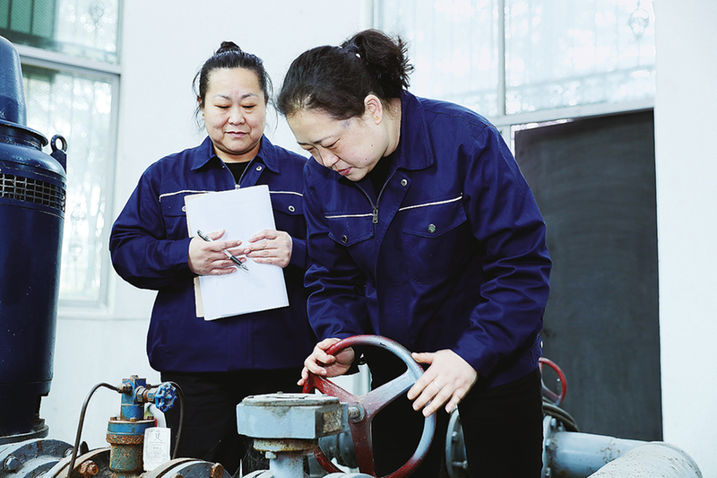 3月3日,商洛市自來水公司水源井的運行工王娜(右)和謝艷敏(左)正在檢查閥門。她們說,由于水源井24小時運行,這個崗位全年無休,作為女性需要克服許多困難,但能夠為城區(qū)保障供水貢獻自己的力量,所有的付出都是值得的。
