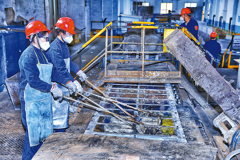 面對400℃高溫,女職工淡定地完成鋅錠表面預處理工作。