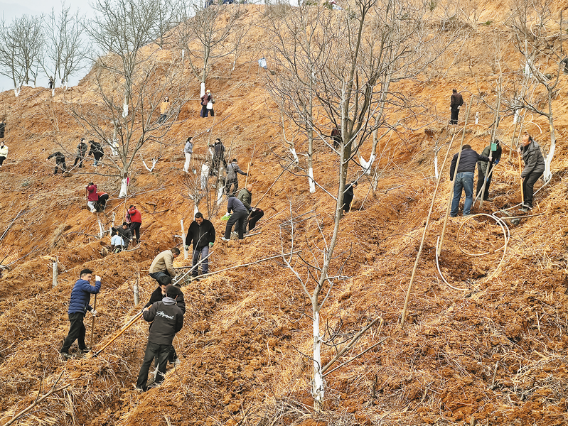 連日來,我市各地紛紛開展義務(wù)植樹活動(dòng),大力營造植綠、愛綠、護(hù)綠、興綠的良好氛圍,以實(shí)際行動(dòng)做生態(tài)文明建設(shè)的實(shí)踐者和推動(dòng)者。圖為3月12日,丹鳳縣棣花鎮(zhèn)組織干部職工在核桃主題公園開展以“踐行生態(tài)文明 守護(hù)綠水青山”為主題的植樹活動(dòng)。 (本報(bào)通訊員 李夢玉 攝)