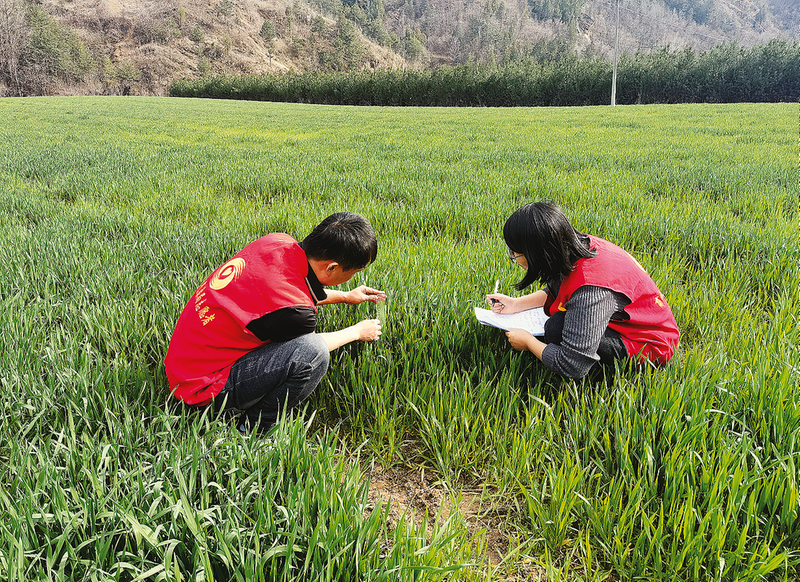 連日來,隨著氣溫回升,冬小麥進入快速生長階段,氣象條件對其生長發(fā)育至關重要。商州區(qū)氣象局工作人員走進田間對小麥的生長狀況進行實地調(diào)查,并結(jié)合近期氣象數(shù)據(jù),為農(nóng)戶量身定制氣象服務方案,助力今年夏糧豐收。 (本報通訊員 鄭亞寧 攝)