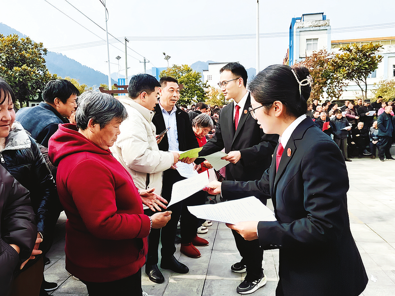 3月5日,丹鳳縣人民法院干警聯(lián)合竹林關鎮(zhèn)丹水社區(qū)“兩委”干部在轄區(qū)開展秦嶺生態(tài)環(huán)境保護普法宣傳?;顒蝇F(xiàn)場,工作人員通過發(fā)放宣傳資料、設立咨詢臺等形式,向群眾普及相關法律法規(guī),重點解讀秦嶺“五亂”違法行為后果,推動形成“人人守法、人人護綠”的鄉(xiāng)村治理新格局。 (本報通訊員 王 蒙 攝)