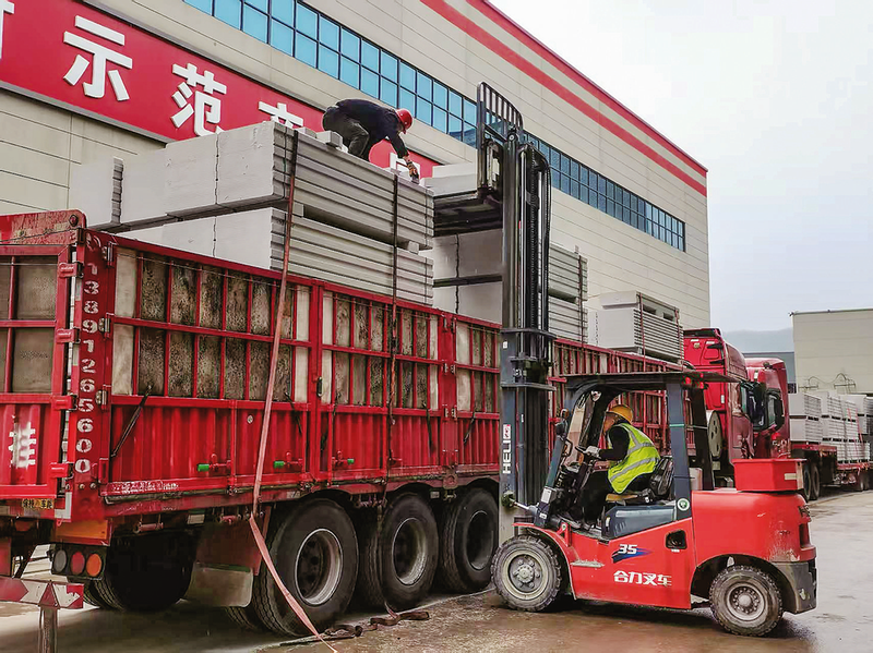 “這一車36包,全是建安置房用的!這建筑材料輕便又結(jié)實(shí),客戶都說‘商洛嶺南造’的板材能免檢。”來自陜西涇陽的貨車司機(jī)賀建抹了把額頭上的汗珠后,一邊說著一邊麻利地往車上碼灰白色板材。