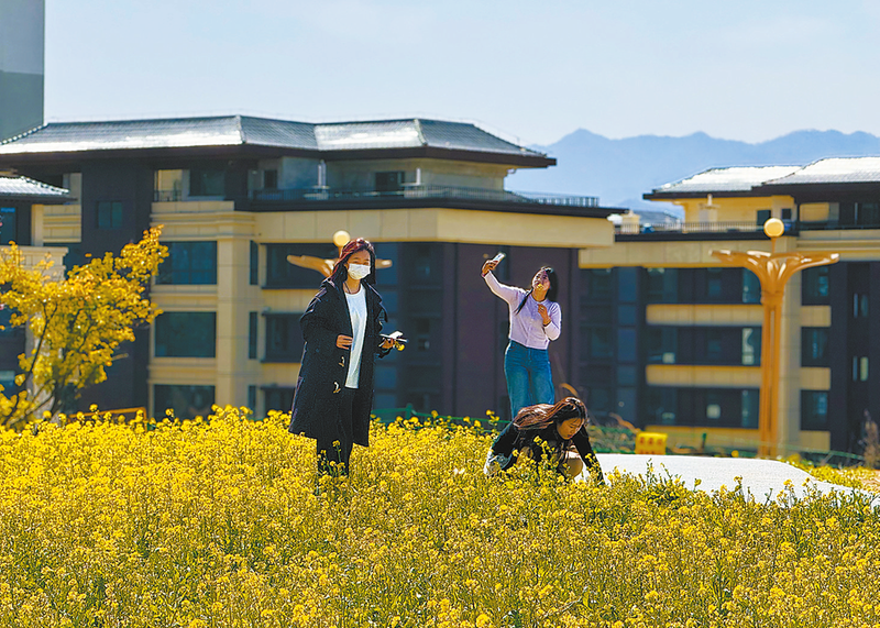 環(huán)城北路旁的油菜地吸引市民游玩打卡