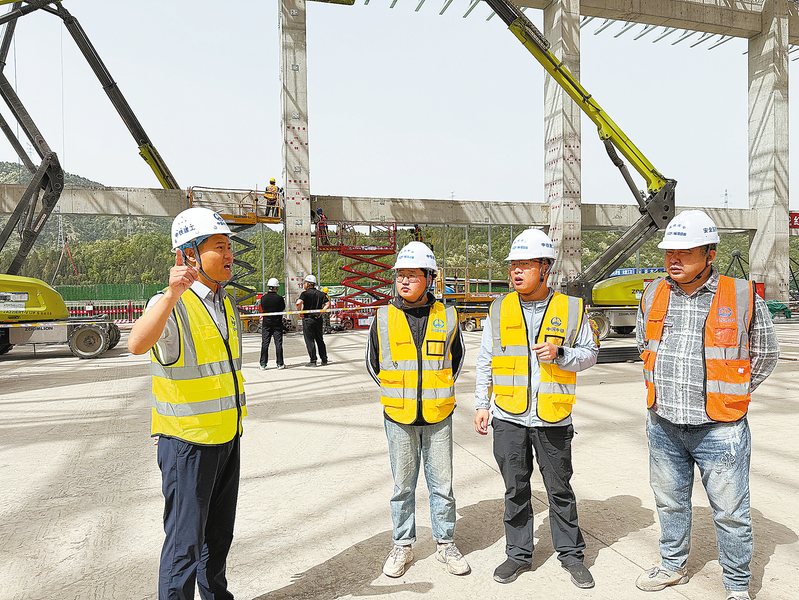 4月30日,時令踏入春夏交替之際,暑氣已悄然升騰,空氣中裹挾著陣陣熱浪,讓人提前感受到盛夏的威力。在商州區(qū)楊峪河鎮(zhèn)西十高鐵商洛西站的施工現(xiàn)場,各種大型機械和工人正在火熱地施工中,中鐵建工集團新建西安至十堰(陜西段)高鐵站房工程項目經(jīng)理李欣正在跟各個施工隊負責人就地開短會,糾正發(fā)現(xiàn)的問題。