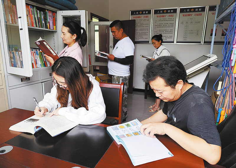 5月9日,丹鳳縣鐵峪鋪鎮(zhèn)桃花村農(nóng)家書屋里,村民在閱讀科普圖書。為了讓農(nóng)家書屋發(fā)揮積極作用,該村每月設(shè)立兩個農(nóng)家讀書日,為群眾閱讀提供茶水等服務(wù),讓群眾在書香中提升鄉(xiāng)村文明素養(yǎng),活躍群眾文化生活。(本報記者 賈書章 攝)
