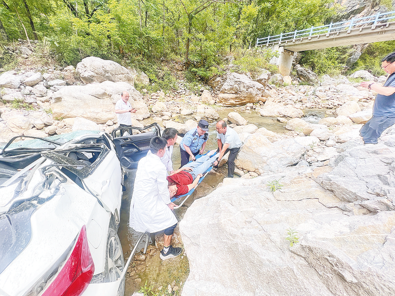 5月14日13時(shí)許,鎮(zhèn)安縣高峰鎮(zhèn)兩河村一輛轎車(chē)意外墜河,當(dāng)?shù)嘏沙鏊泳?,值班民警火速趕赴現(xiàn)場(chǎng),與鎮(zhèn)衛(wèi)生院醫(yī)護(hù)人員展開(kāi)救援,成功將兩名傷者緊急送醫(yī)救治,受到群眾贊揚(yáng)。 (本報(bào)通訊員 寧遠(yuǎn)鵬 攝)