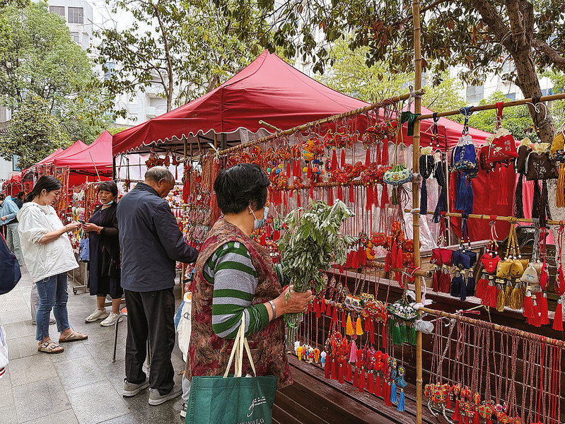 走過(guò)廣場(chǎng),一排排攤位上,琳瑯滿目的香包中都塞滿了艾葉、藿香等中藥材,散發(fā)出清新又獨(dú)特的香氣,承載著長(zhǎng)輩對(duì)孩子“平安健康”的殷切祝福。不時(shí)有路過(guò)的家長(zhǎng)牽著孩子穿梭在攤位間,孩子的目光被各式各樣的香包牢牢吸引,不時(shí)發(fā)出驚喜的贊嘆。“媽媽,這個(gè)小兔子香包好可愛(ài)!”一個(gè)扎著羊角辮的小女孩指著兔子香包,媽媽笑著買(mǎi)下香包,輕輕佩戴在孩子胸前。