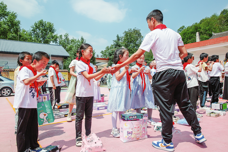 5月29日,在商州區(qū)黑山鎮(zhèn)西川小學、樊川小學的全體學生齊聲朗誦聲中“六一彩虹心愿單”活動拉開了帷幕。在現(xiàn)場,聽見的是,孩子們和現(xiàn)場志愿者一起游戲的歡樂笑聲和一聲聲“謝謝!”看得見的是,桌子上擺滿的烏龜、迷你廚房、籃球、沖鋒槍、電子手表等各式各樣的童年心愿禮物。感受到的是孩子們收到自己期盼已久的心愿禮物時的驚喜以及吃到蛋糕后的甜蜜笑容。