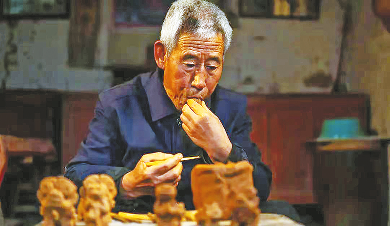 在商州區(qū)大趙峪街道龍山村,75歲的陳五斤是這項技藝的守護人,一頭白發(fā)見證著歲月的沉淀。走進他家,案頭擺著剛捏好的坯子——只見他左手托泥,右手拇指輕旋,兩分鐘便塑造出一個鼓腹龍首的泥哨,扉牙處三道刻痕。