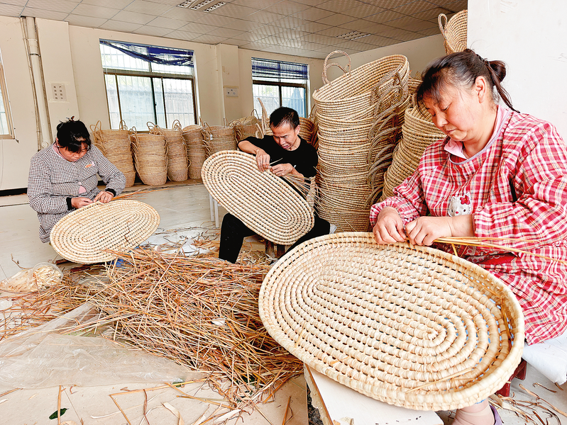 5月28日,位于四皓街道的洛南縣巧手工藝品公司職工在編制草編工藝品。該公司產(chǎn)品深受國內(nèi)外市場青睞,草編嬰兒搖籃90%以上遠(yuǎn)銷日本、韓國和法國等歐洲國家,輻射帶動老、弱、病、殘以及農(nóng)村富余勞動力就業(yè)近1萬人,促進(jìn)人均年增收6000多元。