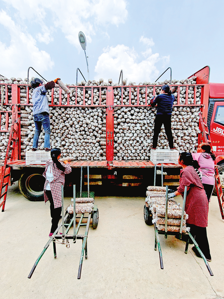 5月28日,位于四皓街道的嶺南生物科技示范產(chǎn)業(yè)園里,工人正在把菌棒轉(zhuǎn)移至大棚內(nèi),為出菇做好準(zhǔn)備。該園區(qū)年產(chǎn)香菇菌袋2000萬袋,食用菌菌種200萬袋。食用菌基地累計(jì)解決群眾就業(yè)2000多人,帶動群眾實(shí)現(xiàn)家門口就業(yè)。
