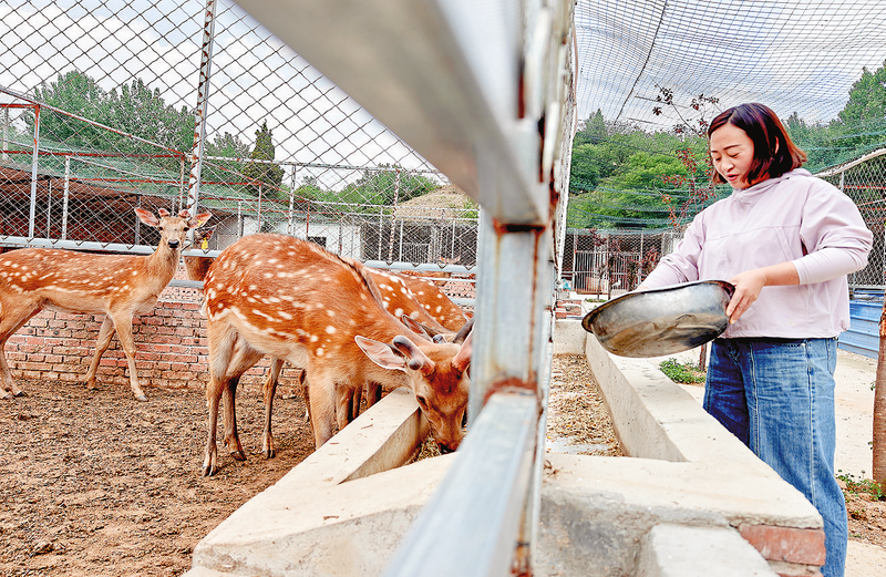 5月28日,位于四皓街道的洛南藍(lán)羽梅花鹿養(yǎng)殖基地里,基地負(fù)責(zé)人張利利正在給梅花鹿喂飼料。目前,該基地養(yǎng)殖有60多只梅花鹿,成為當(dāng)?shù)匾淮筇厣鍪债a(chǎn)業(yè)。