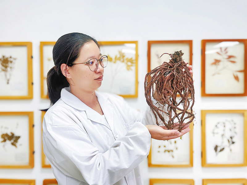 6月11日,在陜西天士力植物藥業(yè)有限責任公司,科研人員向記者展示丹參標本。