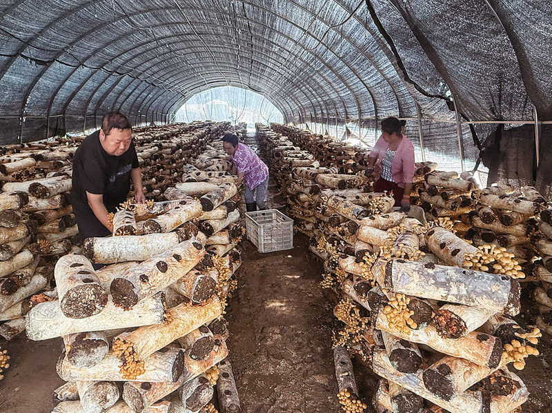 當(dāng)日,正是滑子菇的出菇期。商洛包龍圖農(nóng)業(yè)發(fā)展有限公司位于何家塬村的大棚里,務(wù)工人員在大棚里采摘著滑子菇。一筐筐滑子菇從大棚里裝上貨車,出口到美國、日本、韓國、俄羅斯等國家。