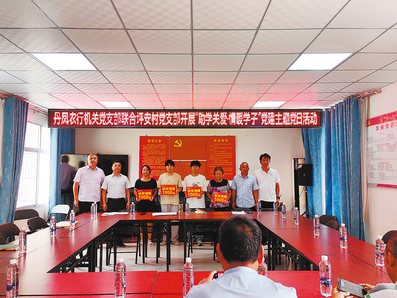 8月20日,丹鳳農(nóng)行機(jī)關(guān)黨支部聯(lián)合武關(guān)鎮(zhèn)坪安村黨支部開展“助學(xué)關(guān)愛·情暖學(xué)子”黨建主題黨日活動(dòng),現(xiàn)場(chǎng)資助今秋新入學(xué)的4名困難家庭大學(xué)生每人1000元。 (本報(bào)通訊員 袁漢鋒 攝)