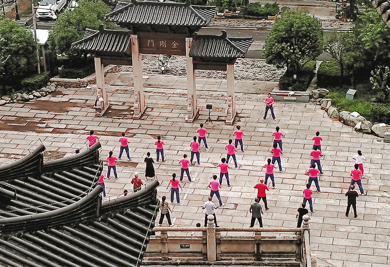 8月22日,健身愛好者在金臺山景區(qū)晨練。鎮(zhèn)安金臺山景區(qū)鬧中取靜,美麗的環(huán)境成為附近居民晨練的首選地,在優(yōu)美的音樂中跳廣場舞的晨練者成為一道風景線。 (本報通訊員 楊建東 攝)