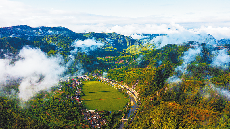 七八月份的商洛,天空湛藍(lán),田野翠綠,一片生機(jī)盎然的景象。
