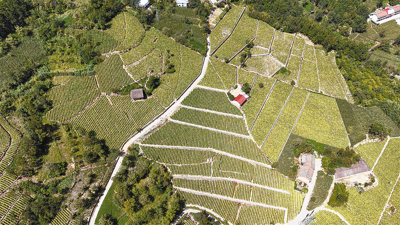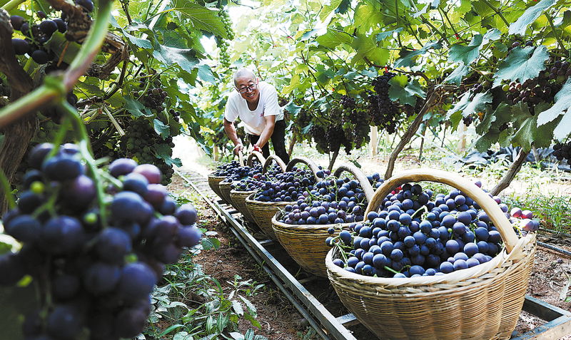 8月9日,在洛南縣永豐鎮(zhèn)李村,葡萄種植大戶李林山在葡萄園內(nèi)安裝鐵軌運(yùn)送葡萄,減輕勞動(dòng)負(fù)擔(dān)。 (本報(bào)通訊員 阮世喜 攝)