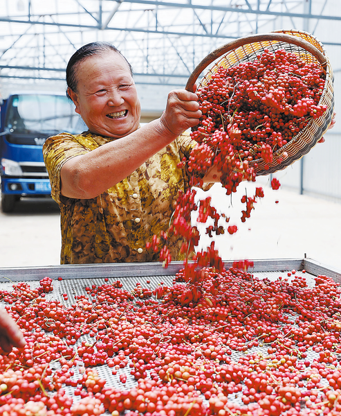 近日,洛南縣保安鎮(zhèn)黑潭村五味子進(jìn)入采摘期。紅色的五味子好像瑪瑙,為這個(gè)豐收季增添了許多喜悅。圖為8月19日農(nóng)戶搶抓晴好天氣采收果實(shí)。 (本報(bào)通訊員 阮世喜 攝)