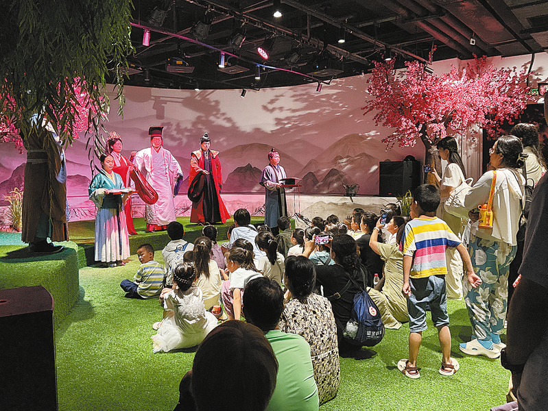 柞水孝義文化體驗(yàn)園里,游客觀看情景劇《周禮人生》,感受孝義文化。