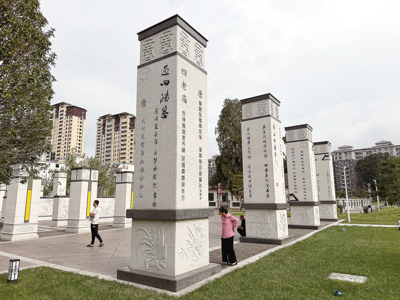 △市中心城區(qū)四皓公園內(nèi),古詩(shī)詞石刻隨處可見(jiàn)。市民或漫步賞景或駐足品讀詩(shī)文,在充滿(mǎn)文化氛圍的環(huán)境中享受休閑時(shí)光。