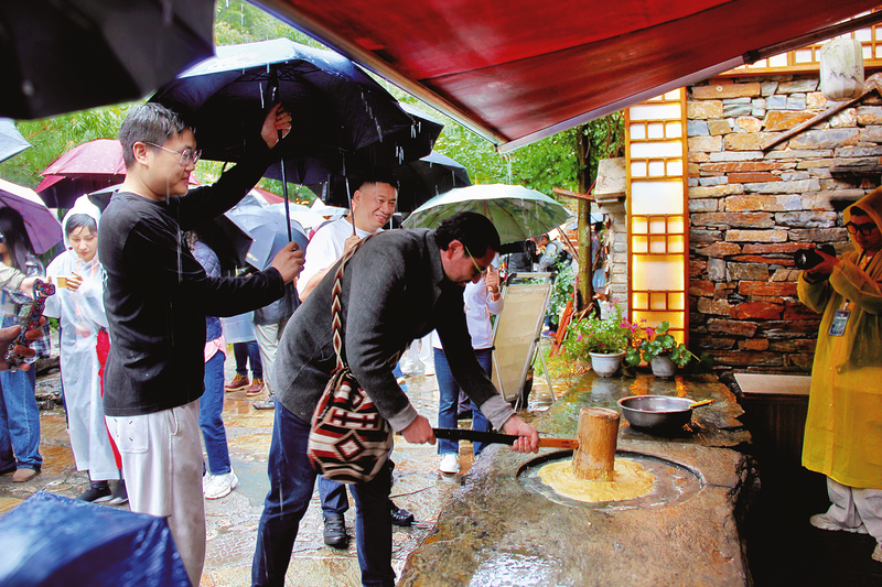 裹著洋芋香氣撲面而來。哥倫比亞詩人赫爾曼·帕爾多在村民手把手的指導下,掄起木錘捶打著石臼中的芋泥,笨拙又認真的模樣,引得周圍發(fā)出陣陣歡快的笑聲。