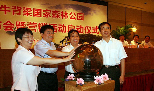 陜西省旅游局副局長(zhǎng)郜家福,商洛市委常委、組織部長(zhǎng)周德喜,副市長(zhǎng)徐明非,柞水縣縣委書(shū)記劉榮賢共同按下水晶球啟動(dòng)牛背梁國(guó)家森林公園營(yíng)銷(xiāo)活動(dòng)