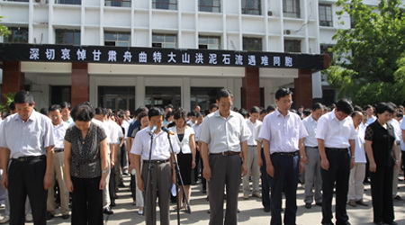商洛市委院內(nèi)魏增軍等市上領(lǐng)導(dǎo)及干部職工向甘肅舟曲遇難同胞哀悼