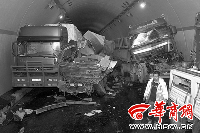 從河南南陽拉貨過來的張師傅說,車禍大概發(fā)生在凌晨5時許,“當時看到電子顯示牌里說前面有塌方,大家都開得較慢。”當他行駛到白家坪一號隧道里時,看到前面堵車便靠邊停下。此時,寧夏牌照的貨車已在前面靠右停著。然后,一輛貨車從左道沖了過來,在避讓不及的情況下撞到了寧夏貨車尾部,并沖到道路左側(cè);緊接著,又有一輛貨車也沖了過來。