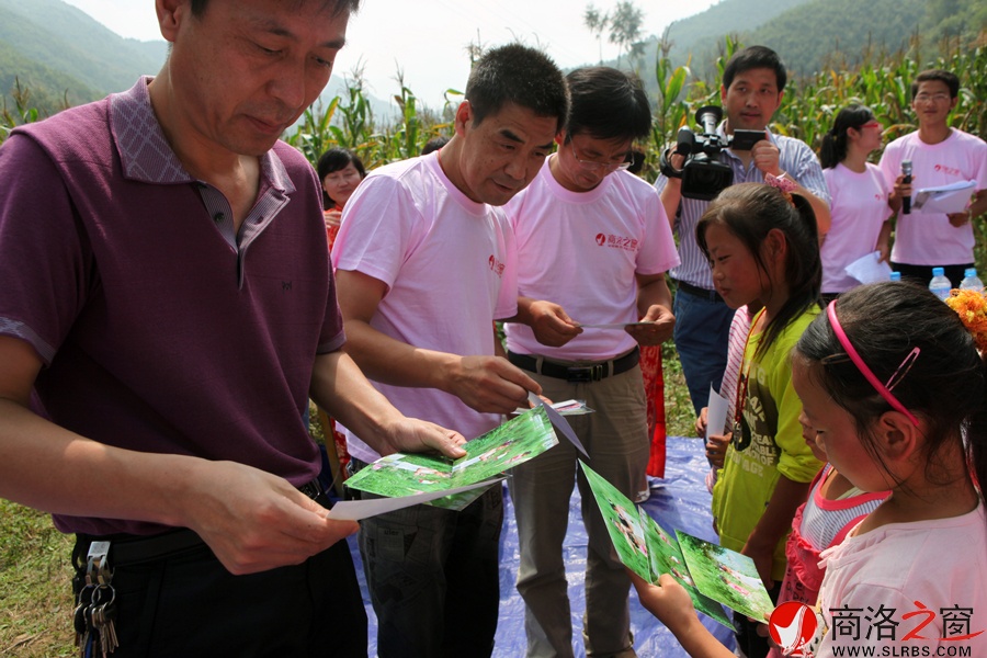 我們活動的源泉——牛建宏副總編,張志宏主任和牧戶關(guān)鎮(zhèn)中心小學(xué)校長閔斌老師為孩子們送照片