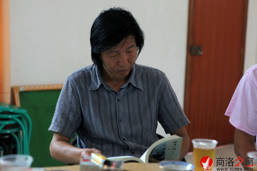 商洛電視臺《商洛全接觸》欄目部部長,制片人馮新勇先生認(rèn)真的看楊賢博老師的贈書《古道詩情》