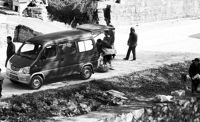 有人開(kāi)著面包車(chē)搶水果