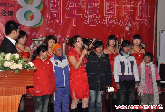 12月24日,在柞水金世紀(jì)大酒店舉行了一場(chǎng)特殊的店慶活動(dòng),“柞水漂亮女人健康SPA養(yǎng)生館”借店慶8周年之際,為感謝社會(huì)各界厚愛(ài),為感恩社會(huì), 活動(dòng)一開(kāi)始,商家用一支青春活力的舞蹈《火花》答謝前來(lái)祝賀的嘉賓和顧客朋友,贏得了在場(chǎng)人員的熱烈掌聲。緊接著幻燈片上播放的一組照片吸引了大家的眼神——破爛不堪的房子、簡(jiǎn)陋的生活用品、年齡相差好幾倍的一家人等等,讓在場(chǎng)的所有人感到不可思議,但這確是真實(shí)的存在。在主辦方負(fù)責(zé)人張靜女士引導(dǎo)下,五個(gè)孩子走上了舞臺(tái)。經(jīng)主持人介紹,她(他)們正式該機(jī)構(gòu)之前通過(guò)實(shí)地考察,確定為該機(jī)構(gòu)長(zhǎng)期持續(xù)資助的蔡玉窯中心校的家庭困難學(xué)生。