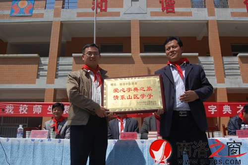 商洛學(xué)院團(tuán)委副書記蔣正治在講話中指出,今年1月,國(guó)家新聞出版總署倡議開展捐贈(zèng)《新華字典》活動(dòng),為中西部貧困地區(qū)中小學(xué)生送溫暖、獻(xiàn)愛(ài)心。少年兒童是祖國(guó)的花朵,是民族的未來(lái)。培養(yǎng)和教育兒童不僅是學(xué)校與老師的責(zé)任,更是社會(huì)乃至每一個(gè)人義不容辭的責(zé)任。蔣正治還寄語(yǔ)同學(xué)們勤奮學(xué)習(xí),發(fā)奮圖強(qiáng)。他說(shuō),今天我們捐獻(xiàn)的物品凝聚著商洛學(xué)院師生的愛(ài)心,希望同學(xué)們珍愛(ài)手中的字典,提高讀書識(shí)字的能力,學(xué)本領(lǐng),長(zhǎng)知識(shí),不辜負(fù)黨和政府的關(guān)懷,不辜商洛學(xué)院師生的期望,在學(xué)校做個(gè)好學(xué)生,在社會(huì)做個(gè)好少年。