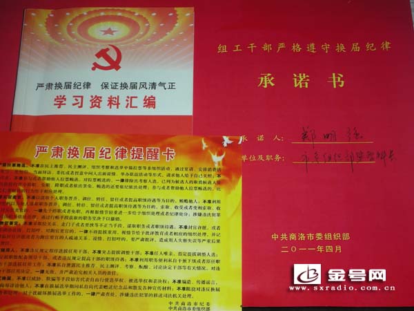 商洛市在這次換屆工作中推出“五承諾”、“紀(jì)律提醒卡”和學(xué)習(xí)資料匯編,確保換屆風(fēng)清氣正,這一制度被中組部干部監(jiān)督局收錄在京展出。